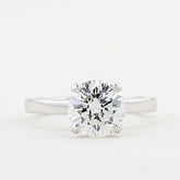 This timeless solitaire ring features a 1.61ct round brilliant cut HRD certified Diamond, graded H in colour and VVS2 in clarity, Excellent cut, polish and symmetry with strong fluorescence in a classic four claw setting, crafted in platinum.