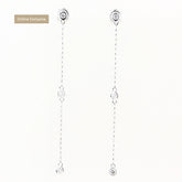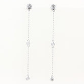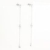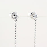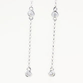 These earrings feature three round brilliant cut diamonds in bezel settings, suspended on a fine cable link chain. The diamonds have an approximate total carat weight of 0.36ct across the pair and are of SI1-SI2 clarity with G-H in colour.