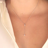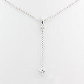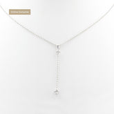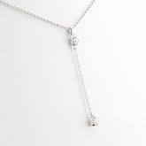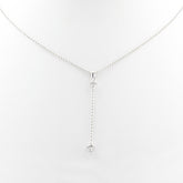 This necklace features a 0.08ct round brilliant cut diamond pendant on a fine rope chain, with an additional 0.13ct diamond suspended below, giving a total carat weight of 0.21ct. The diamonds are a G-H in colour and VS2 in clarity.