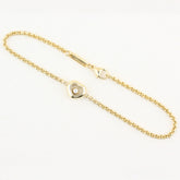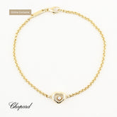 A dainty yellow gold chain bracelet from the Chopard Happy Diamonds Icons collection. This bracelet features a round brilliant cut diamond measuring approximately 0.05ct in a heart shaped charm on a delicate chain.