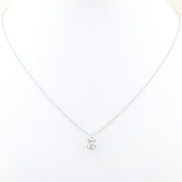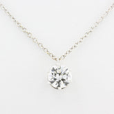 Necklace is attached to an 18ct white gold trace chain with lobster clasp set with a further small Diamond with a chain measuring 44cm. Diamond colour has been graded H and a SI1 clarity grade.