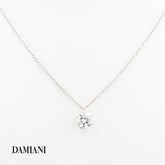 A pre-owned 1.30ct Diamond pendant from the Damiani Minou collection, this elegant pendant showcases a brilliant-cut Diamond, approximately 1.30 carats, secured in a six-claw setting. A subtle mini-bale allows the chain to run seamlessly through the design, ensuring a clean, sophisticated silhouette.