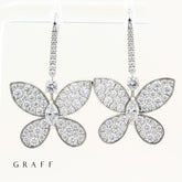 A beautiful pre-owned pair of Graff butterfly Diamond drop earrings, set in 18ct white gold.