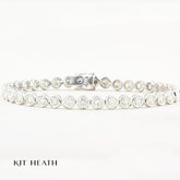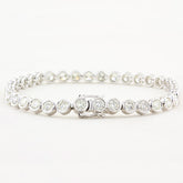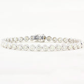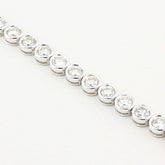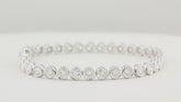 This line bracelet features round brilliant cut diamonds in rub over bezel settings giving an estimated total carat weight of 6.60ct. Diamonds are J/K in colour and VS clarity.