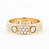 Iconic second-hand Cartier love ring, pave set with round brilliant cut Diamonds, crafted in 18ct rose gold, size 56.