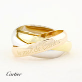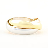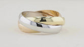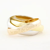 A vintage 'Le Mist de Cartier' trinity ring, featuring three interlocking 3.2mm bands in 18ct white gold, 18ct yellow gold and 18ct rose gold.