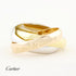 This tri-colour ring features the iconic 'Les Must de Cartier' engraving on the rose gold band.