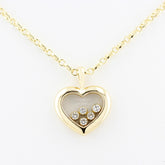 This necklace features a heart pendant with five of Chopard's iconic 'floating' diamonds with an approximate total carat weight of 0.10ct, suspended on a fine anchor chain.