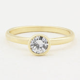 A gorgeous, pre-owned 0.60ct brilliant cut Diamond ring, in a rubover setting and crafted in 14ct yellow gold.