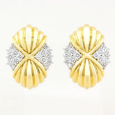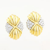 A pair of statement diamond clip on earrings set in 18ct yellow gold and platinum