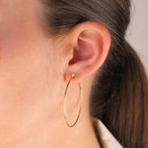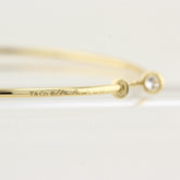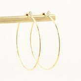 A delicate pair of Elsa Peretti for Tiffany and Co yellow gold hoop earrings. Each earring features a bezel set round brilliant cut diamond with a total carat weight of 0.10ct across the pair.