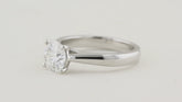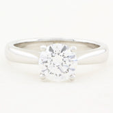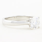 Featuring a GIA certified round brilliant cut diamond measuring 1.20ct, F in colour and SI2 in clarity. The diamond is set in a four claw setting in platinum.