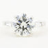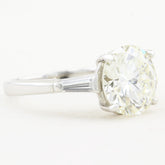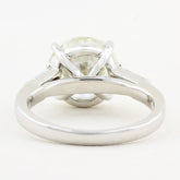 This ring features a 3.33ct round brilliant cut GIA certified diamond, M in colour and SI1 in clarity, in a four claw setting between two tapered baguette diamonds giving an estimated total carat weight of 3.65ct.