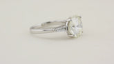 An eye-catching pre-owned 3.33ct diamond engagement ring with tapered baguette shoulders set in platinum.