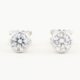 A pair of pre-owned classic diamond stud earrings with an approximate total carat weight of 1.00ct in platinum bezel settings.