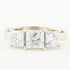 This trilogy ring features three GIA laser inscribed princess cut diamonds giving a total carat weight of 2.01ct. The centre stone measures 1.01ct and is of G colour and VS2 clarity. It sits between two additional diamonds measuring 0.50ct each with F and G in colour and VS2 clarity.