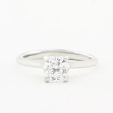 A classic radiant cut diamond engagement ring set in platinum, featuring a 1.01ct radiant-cut diamond in a timeless four-claw setting.