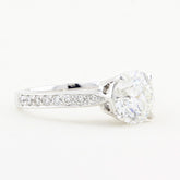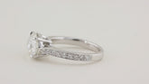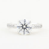 Pre-owned classic solitaire engagement ring showcasing a 2.21ct round brilliant Diamond, set into a 18ct white gold band with Diamond shoulders in this elegant design.