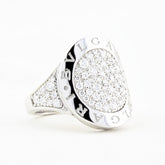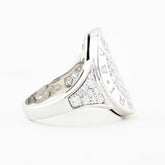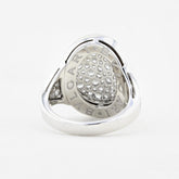 The ring is crafted in 18ct white gold, measuring 20mm at the widest. Finger size 'M'.